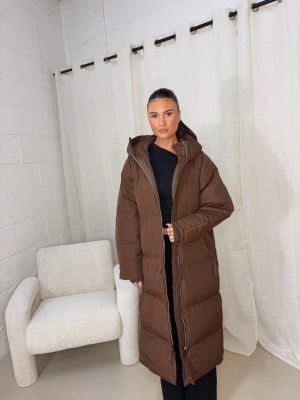 Bruine lange winterjas