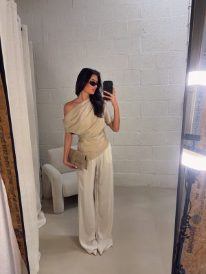 Renilde linne top – Beige