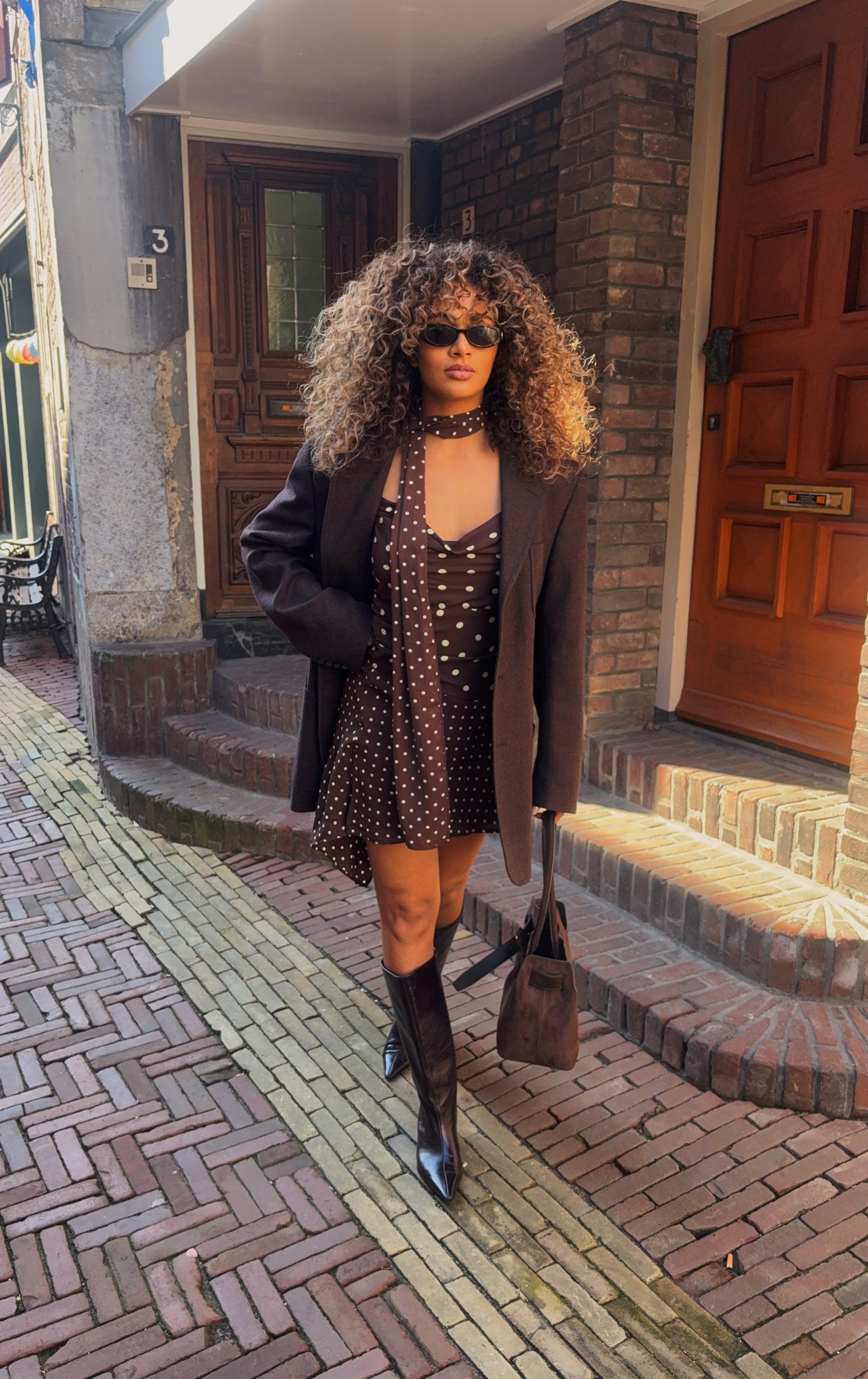 Bella polkadots dress – Brown